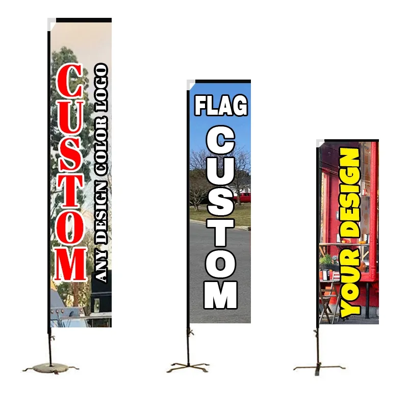 Rektangel strandflag, Flad topflag, med rektangulær form, også kendt som Block flag, Edge flag eller Telescopic flag, det kan få flaget til at blive vist smukt når som helst. Rektangelflag har et større udskrivbart område end dråbeflag eller fjerflag, velegnet til marketingbudskaber og branding.
