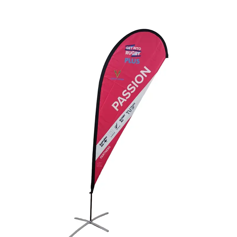 Teardrop strandflag bruges hovedsageligt til udendørs reklamebegivenheder og nogle reklamesteder, såsom produktudstillinger i indkøbscentre, salgsfremmende opsætninger i supermarkeder, reklameskilte til hoteller og kontorbygninger, visning af nogle skoleaktiviteter, identifikation af deltagere ved sportsbegivenheder og reklameskilte for sponsorer.